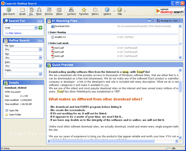 Det eneste Yahoo, og de fleste andre deltagere i testen, mangler, er mulighed for at søge i filer, der ligger i netværksmapper. Copernic er det eneste gratisprogram, der kan søge på netværk.