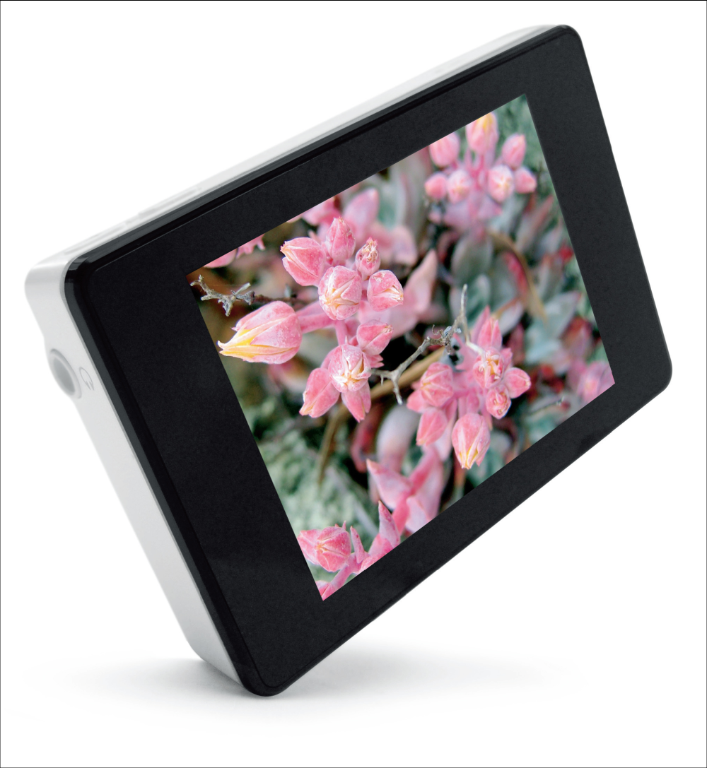 af en 2,2” farveskærm med en opløsning på 320 × 240 punkter. De få knapper, der er, finder vi langs afspillerens kanter.