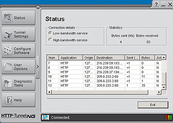 Tunnelen bruger kun port 80 til at sende data. Det gør det muligt for andre programmer, der normalt benytter andre porte, at bruge tunnelen. På den måde er det muligt at omgå problemet med porte, som er lukket af virksomhedens firewall. Ved hjælp af knappen Konfigurer Software angives de programmer, som skal kunne tilsluttes internettet, for eksempel Internet Explorer eller Emule.
