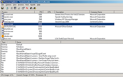 På trods af dette er det ganske nemt at kontrollere, om Wiretap Professional kører på computeren. Begynd med at starte et avanceret processtyringsprogram, eksempelvis Process Explorer, og kontroller, om processen Scvhost.exe kører på computeren.