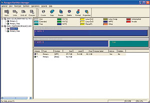 I lighed med Disk Director Suite er Partition Magic meget nemt at bruge, takket være en smart grænseflade og rigtig gode konfigurationsmuligheder. Programvinduet er delt op i to hoveddele, hvor det venstre indeholder alle tilgængelige kommandoer, mens det højre viser alle tilgængelige harddiske.