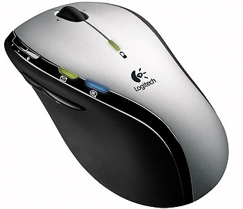 MX610 har hele otte knapper samt naturligvis scroll-hjulet. Ud over de traditionelle knapper på oversiden kan du nå alle knapper med tommel- eller pegefingeren, hvis du er højrehåndet. Modtagelsen understøttes af en trådløs USB-modtager.