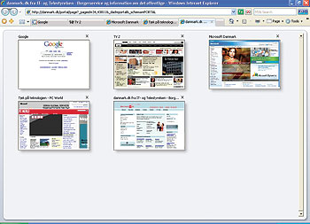 Vi spoler lige tilbage til “tabbed browsing.” For mange vil den største nyskabelse i IE7 være tabbed browsing, hvilket på dansk må kaldes surfing i faneblade. Brugere af andre browsere – såsom Firefox og Opera – har længe nydt godt af denne funktion, og med IE7 har Microsoft ikke blot taget konceptet til sig. Det er også blevet forbedret.