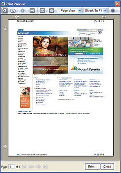 Har man førhen været frustreret i sine forsøg på at få en anstændig udskrift ud af Internet Explorer, kan det rapporteres, at galskaben er forbi med IE7’s nye Vis Udskrift-funktion. Nu er det blevet nemt at udskrive både i stående og liggende format, og man kan tænde og slukke sidehoved- og fod, justere udskriftens margener samt zoome frit op og ned i størrelse. Mere brugervenlighed kan man næppe ønske sig.