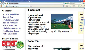 Det samme gælder for Real Simple Syndication (RSS), der de seneste par år har vendt op og ned på, hvordan vi modtager nyheder. Når IE7 åbner en webside med et tilknyttet RSS-feed, lyser browserens RSS-knap automatisk op (hvis siden er kodet korrekt). Et enkelt klik opretter et abonnement, og fra Foretrukne-menuen har man nu adgang til samlingen af RSS-feeds.