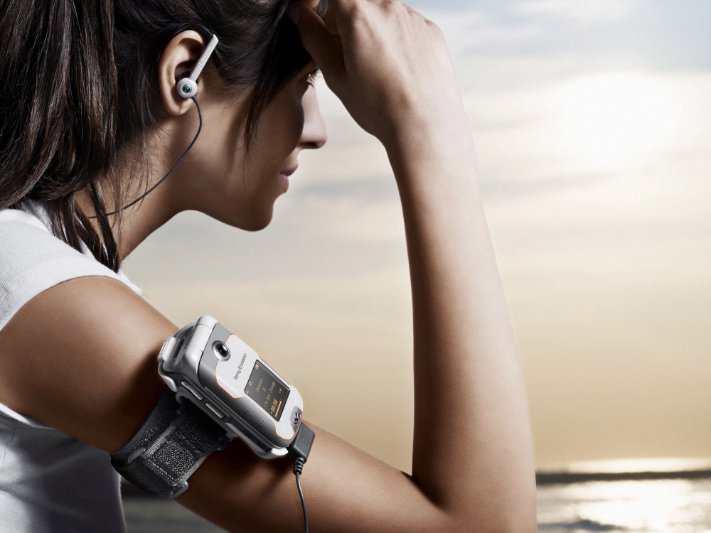 Det sker med Walkman-telefonen W710i, der har indbygget hastighedsmåler, afstandsmåler, skridttæller og stopur. Selve Walkman-afspilleren og FM-radioen kan betjenes, uden man behøver at åbne telefonen, og dermed risikerer man ikke at miste træningskoncentrationen, når man jogger af sted til tonerne af Eye of the Tiger.