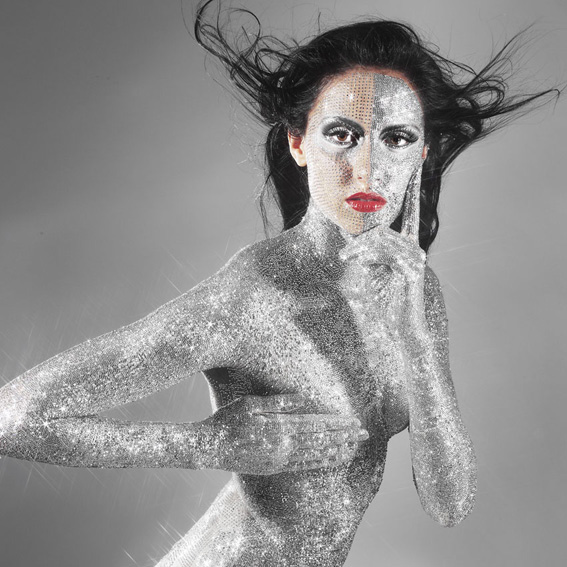 På websiden er en model dækket af en million små Swarovski-krystaller, som pilles af, i takt med de købes over nettet.