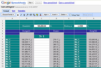 For hvor du i ThinkFree kan fremstille flotte grafer, så kan Google Spreadsheet, til at starte med, blot bruges som en avanceret form for regnemaskine.