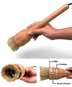 Med den elektroniske malerpensel I/O Brush filmer man den farve, mønster eller bevægelse, som man ønsker at tegne med, og straks efter kan man tegne med det filmede på et elektronisk lærred, der består af en trykfølsom skærm med bagprojektion.