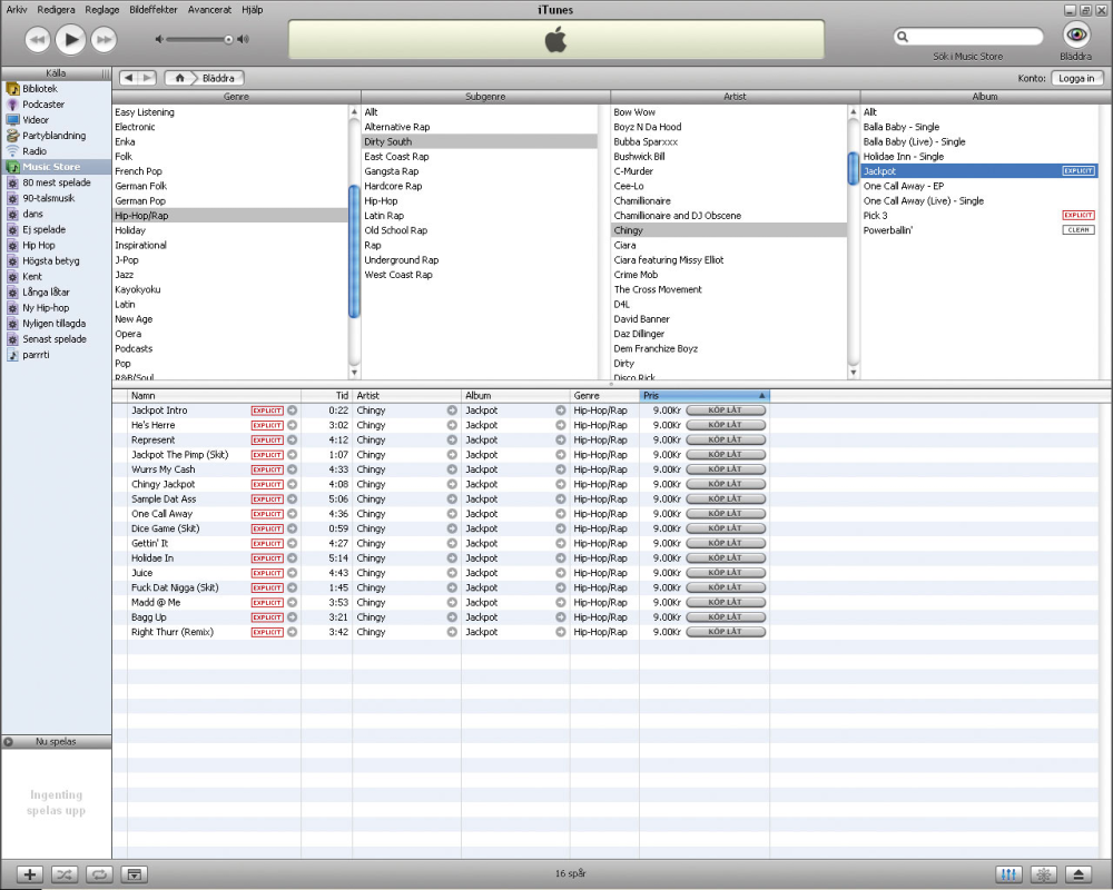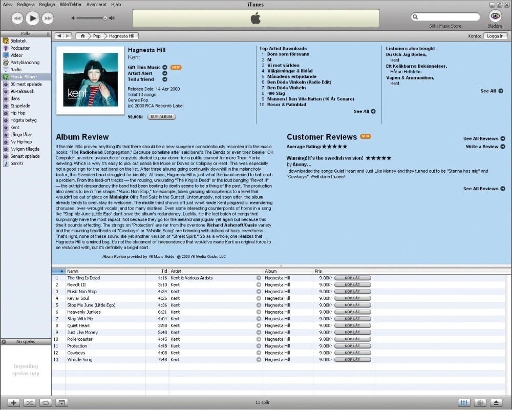 Det er ikke muligt at se, hvor iTunes ender og Music Store begynder – at søge rundt i musiknumrene i Music Store er stort set som at bladre i sin egen musiksamling. Dog med den lille forskel, at der sidder en knap til højre for hvert nummer med ordet "køb".