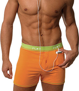 Iboxer er et par ganske smækre boxershorts med en velplaceret lomme til din elskede Ipod. Underhylerne fås i forskellige farver. Køber du to par, får du tre gratis musiknumre fra Itunes Musicstore.