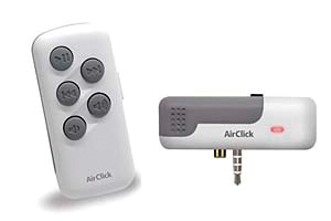 Griffins fjernbetjening, AirClick, sættes i afspillerens headset- eller docking-indgang, afhængigt af hvilken type iPod, du har. Med fjernbetjeningens fem knapper styrer du nemt afspillerens grundfunktioner. Ifølge specifikationerne kan fjernbetjeningen række 19 meter uden alt for mange betonvægge imellem.