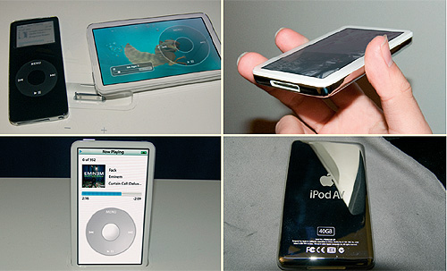 Så det er nok ikke helt forkert at forestille sig, at Apple inden for en nær fremtid lancerer en Ipod med en rigtig bredskærm og en harddisk på 80 GB. Hvis billederne, som blev lagt ud på Macshrines webside i begyndelsen af marts, er ægte, så bliver den sjette generation af Ipod forsynet med touchscreen, hvor klikhjulet vises som et billede på skærmen.