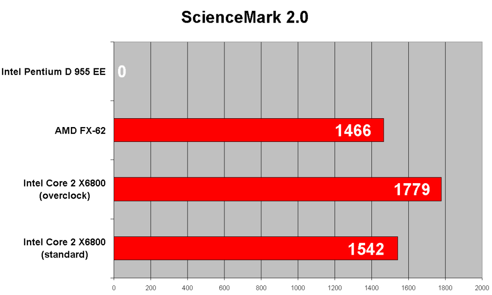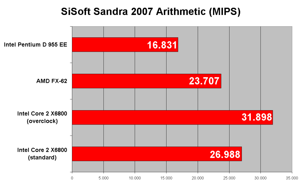 Er du særligt interesseret i, om Intel formår at slå AMD, så behøver du ikke læse videre. I tre ud af vores fire tests formår Core 2 Duo at komme foran AMD’s FX-62 processor. Samtidig er forskellen i megahertz svundet ind, sådan at Core 2 Duo X6800 leveres med en standardhastighed på 2,93 GHz og AMD FX-62 med en hastighed på 2,8 GHz.