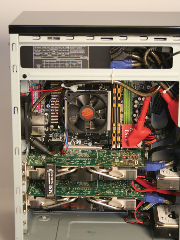 Hele herligheden er monteret på et Micro-Star K9N Platinum SLI bundkort, så der skulle være saft og kraft nok til selv de mest krævende spil og applikationer. Men lad os lige tage delene hver for sig.