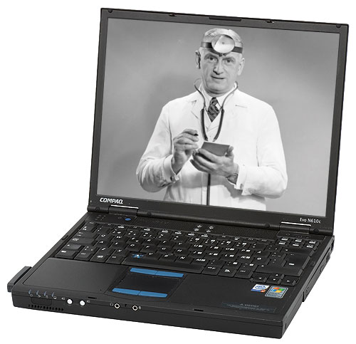 Vores udgangspunkt for at sætte gang i skruetrækkeren er en maskine i mellemstørrelsen, en Compaq (nu HP) Evo N610c. Den er udstyret med en 1,7 GHz Pentium M processor, en 20 GB harddisk (4.200 RPM, 2 MB buffer), 512 MB ram og et Radeon mobile 7500 grafikkort. En ikke helt billig maskine for 2-3 år siden.