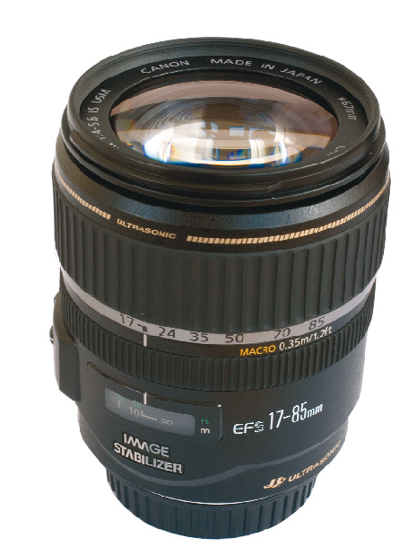 Canon EF-S 17-85 mm IS. Et fremragende 5X zoomobjektiv med indbygget stabilisator. Dette burde være standardobjektiv på ethvert spejlreflekskamera fra Canon. Pris cirka 5.000 kr.