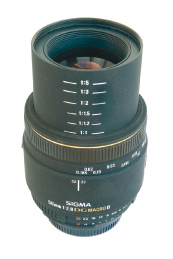 Sigma 50mm F/2,8 EX DG Makro. Findes både til Nikon og Canon. Makro-objektivet har en fast brændvidde på 50 mm, og det er ret lysstærkt med F2,8. Derfor kan det bruges til mange almindelige fotoopgaver som blandt andet portrætter. Det specielle ved makroobjektiver er imidlertid, at du kan gå meget tæt på motivet. Når linserne er rullet helt frem, som på billedet, kan du fotografere 1:1. Pris cirka 3000,00.