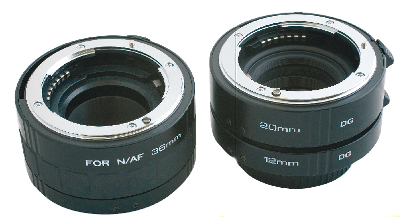Kenko Extension Tube Set (12, 20, 36mm). Mellemringe, der monteres mellem kamerahuset og et almindeligt objektiv. Mellemringene indeholder ingen glaselementer de flytter bare brændpunktet, hvorved man opnår en meget kraftig makroeffekt. Et must for makrofanatikere! Set på nettet til cirka 1.600,00.