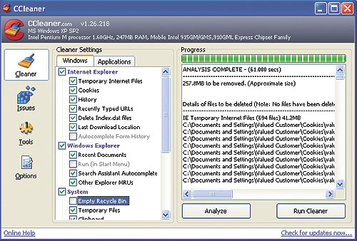 Med tiden fyldes din pc med alt muligt rod, rester fra din webbrowser, cookies og lignende. CCleaner finder og sletter alt dette binære bundfald.