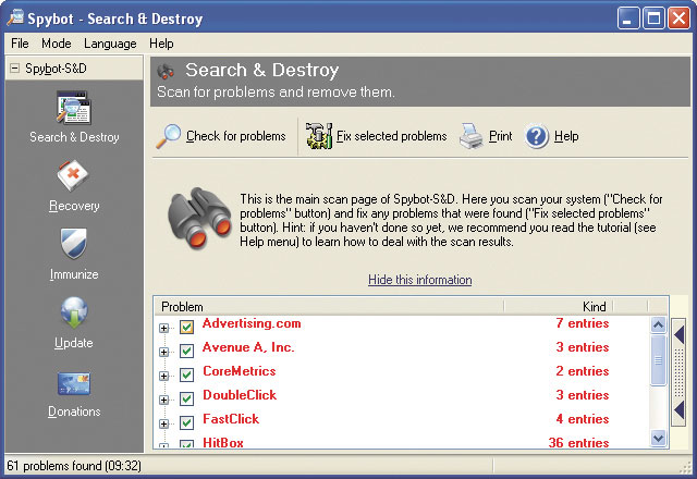 Spyware er software, som kan få din maskine til at arbejde langsommere, overvåge hvor du surfer, eller til og med få din browser til at gå ned. Intet enkelt værktøj yder fuldstændig beskyttelse, men Spybot er et effektivt værktøj.