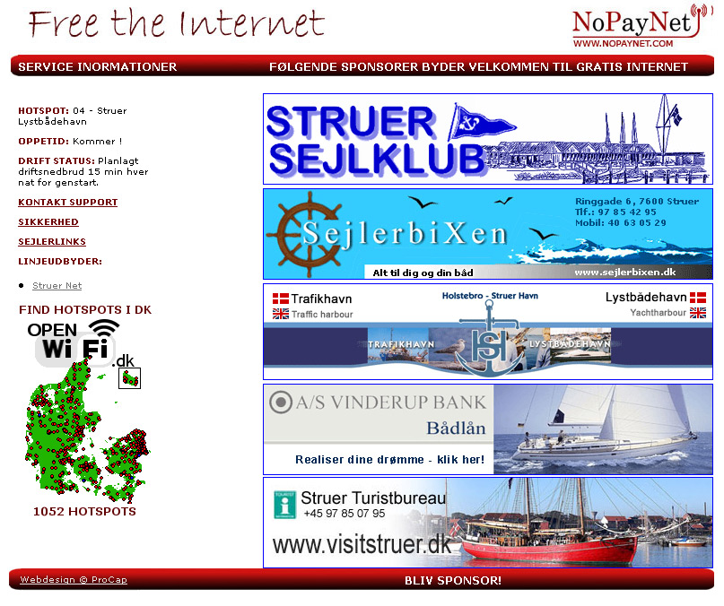 Det lille firma NoPayNet vil etablere gratis hotspots i hele landet, og fra flere lystbådehavne er det allerede i dag muligt at tjekke mail og surfe på nettet – uden at betale.