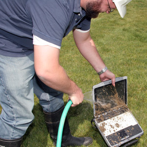 Ud over høje varme- og kuldegrader kan computeren tåle at rode rundt i en sandkasse, og en soppetur i springvandet er heller ikke noget problem.