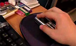 Han bliver således nødt til at holde telefonen et stykke over musemåtten - ellers kan kameraet ikke få nok lys.