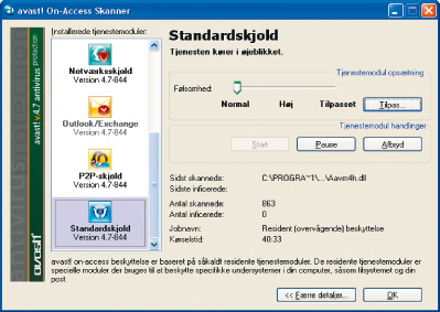 Opdateringen af virusdatabasen foregår også helt automatisk, men kan desværre ikke indstilles til et bestemt tidspunkt.