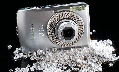 Det luksuriøse kamera er et Ixus 65 bestykket med hele 380 diamanter af belgiske Eddie Elzas, der ejer verdens største samling af farvede diamanter.
