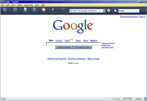 Torparks udseende virker måske bekendt. Det er fordi, webbrowseren er en lettere omskrevet variant af Firefox Portable. Det betyder, at du kan køre Torpark fra en USB-nøgle.