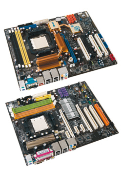 Chipsættene på begge kort kommer fra Nvidia. Asus bruger Nforce 590 og MSI Nforce 570.