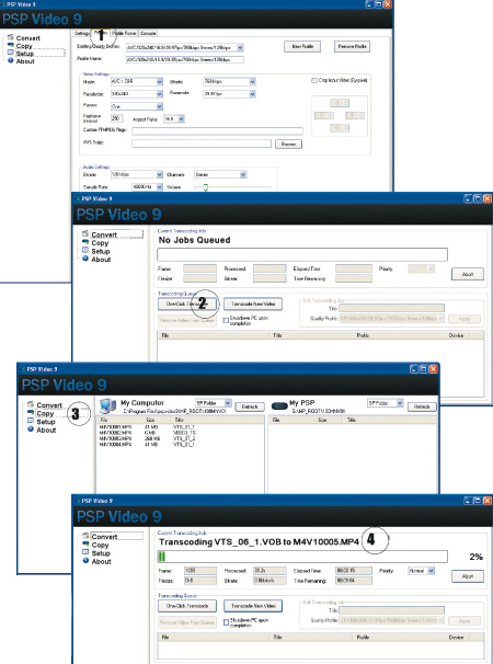 Kodningen foregår også på samme måde, den eneste forskel mellem programmerne er, at PSP Video 9 har et system, der håndterer overførslen af film til din PSP.