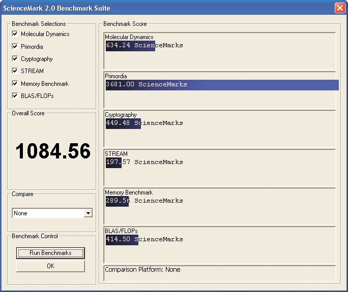 Sciencemark er særdeles let at køre, men meget svært at forstå. Programmet tester processorens ydelse ved at udføre en række videnskabelige beregninger, og det betyder matematik og fysik på et højere niveau, end de fleste kan forstå. Testresultatet er dog efterfølgende nemt at aflæse.