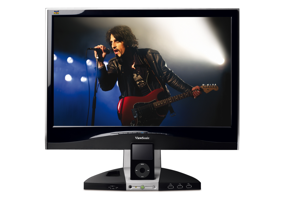 Den 22 tommer store skærm i bredformat har nemlig lov at bære betegnelsen "Made for iPod", og den har parkeringsplads til Apples musikafspillere. Dockingstationen er integreret i skærmens fod.