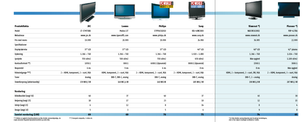 Med sit konsekvent flotte billede og eminent lette betjening lægger Philips sig lige nøjagtig i testens spids – skarpt forfulgt af Sony, som render med titlen Godt køb.