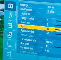 Samtidig er der en ganske svag tendens til, at sort blåtones en anelse, og det kan også undre. Dette er dog formentlig kun mærkbart i vores testopstilling, hvor fjernsynene stod fysisk ved siden af hinanden. Ydermere bemærkes den svage blåtoning udelukkende, hvis hele eller næsten hele skærmbilledet stod enten meget mørkt eller helt sort.