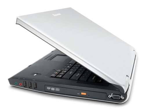 Den store 15,4 tommer XGA TFT-skærm er skarp som julesnaps, da den har VibrantView og en opløsning på 1.280 gange 800 pixels. Med ram på 512 megabyte kan du snildt køre den medfølgende Windows XP Home