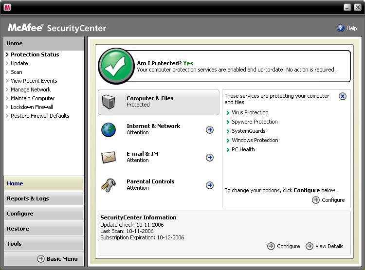 Det skal dog ikke være nogen hemmelighed, at McAfee kræver en del af brugeren, hvis man først begiver sig ind i systemets menuer og dialogbokse.