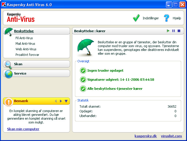 Kaspersky er ikke det navn, der kommer først på bordet, når de fleste snakker antivirus, og det er både synd og skam, for Anti-Virus 6.0 kommer ind på en flot tredjeplads.