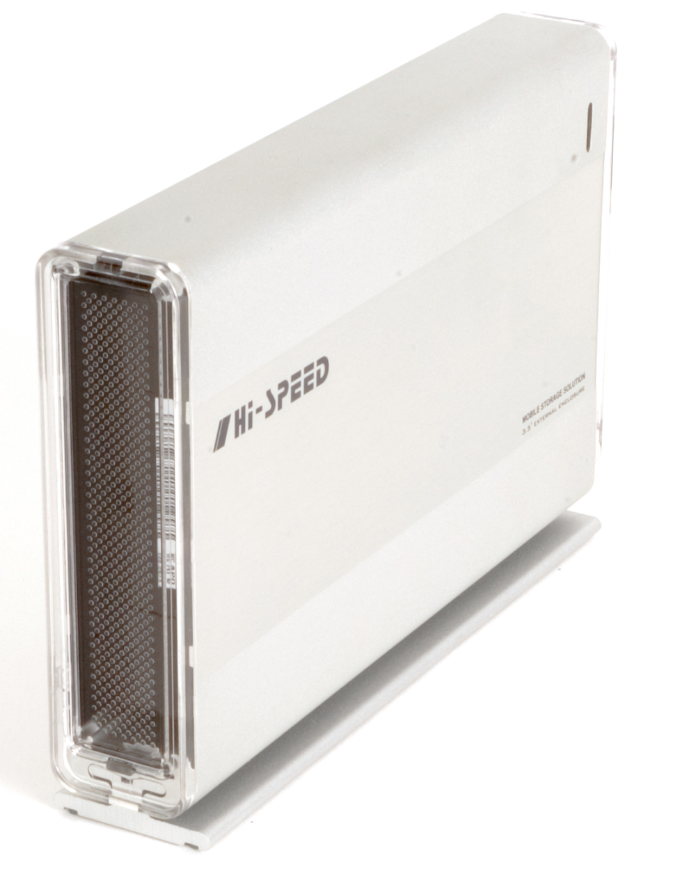Kabinettet er i aluminium og uden blæser – designet er pænt, og kabinettet er relativt kompakt. Harddisken slukker ikke, når pc’en slukkes, hverken ved brug af USB eller Serial ATA.
