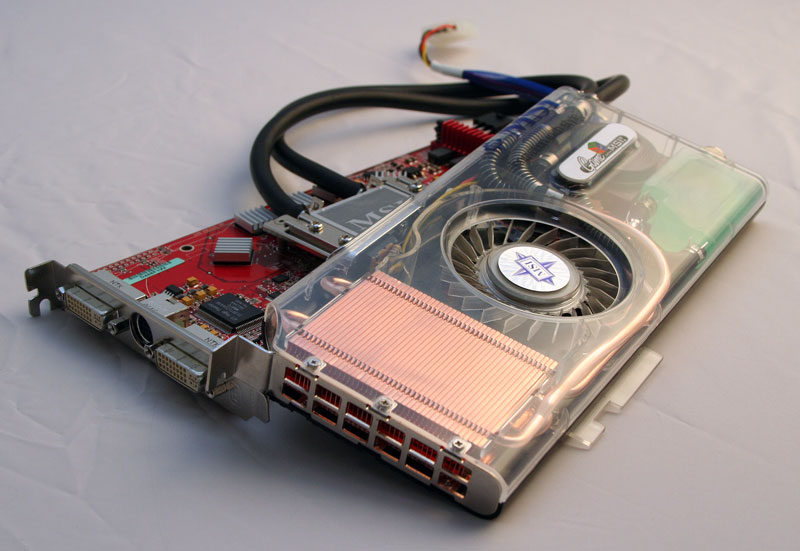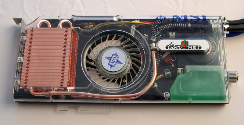 Den udfordring har ingeniørerne hos MSI taget op. Resultatet er et grafikkort med det mundrette navn MSI RX1950XTX-VT2D512E. De mange konsonanter dækker over, at der er tale om et kort baseret på den nyeste ATI-chip Radeon 1950, at der er 512 megabyte ram på kortet, og at det er vandkølet.