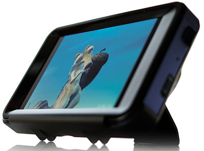 Skærmen har en opløsning på 720×480 pixel og er i bredformat. Den har en rigtig god betragtningsvinkel, hvilket betyder, at man sagtens kan se film sammen med vennerne. Det er heller ikke nødvendigt at bruge hovedtelefoner, eftersom stereohøjttalerne på bagsiden er rigtig gode.