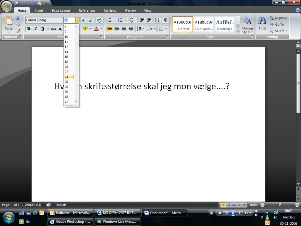 Når du skriver en tekst og ønsker at ændre en skriftstørrelse og er i tvivl om hvilken størrelse der er den bedste, kan du hele tiden se resultatet på hele dokumentet alt imens man fører musen over for eksempel skriftsstørrelse 24.