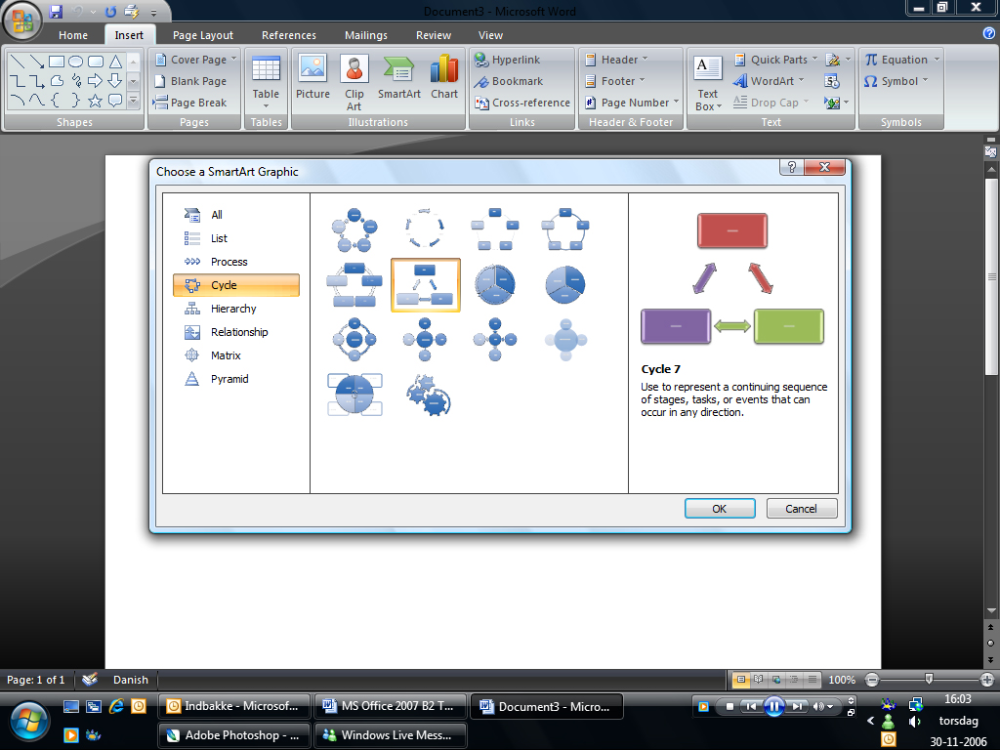 SmartArt – Specielt for forretningsfolk eller andre der laver diagrammer og modeller, er SmartArt virkelig velegnet. Det er skabeloner af kendte modeller og diagrammer, som man ofte har brug for.