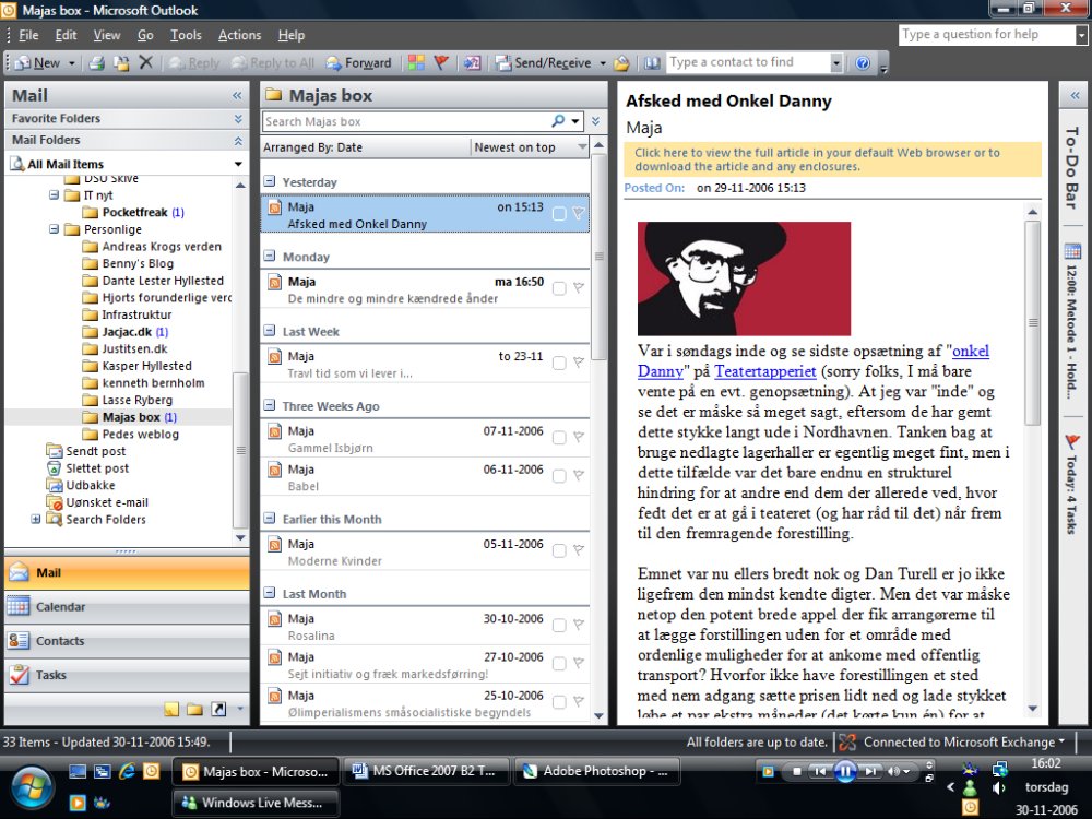 Der skete en masse ting med Outlook, da vi fik version 2003, og derfor er der desværre ikke så meget nyt under solen i Outlook 2007. Designet ligner sig selv, og basisfunktionerne er de samme. Dog er der et par nye funktioner, vi vil kigge lidt nærmere på.
