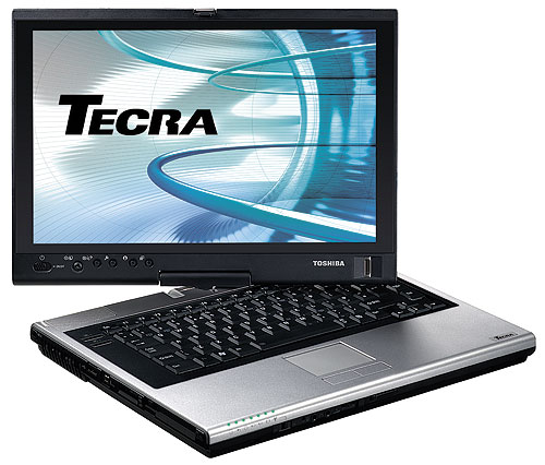 Toshiba holder fast i konceptet med denne Tecra M7, der fungerer som en traditionel notebook, men kan anvendes som Tablet pc, når man vender skærmen 180 grader og låser den fast til rammen. Den medfølgende pen registreres allerede en centimeter fra skærmen og styrer markørens bevægelser ubesværet.