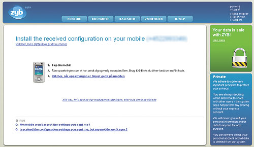 Fortvivl ikke. Hvis din mobil understøtter SyncML, men ikke er på listen over modeller hos Zyb, kan du ofte kunne klare opsætningen selv. Find manualen til telefonen frem og brug Zybs grundige hjælpefunktion. Ofte skal du blot bruge navnet på din internetprofil (eksempelvis TDC Mobil WAP GPRS), adressen til SyncML-tjenesten hos Zyb hedder den http://sync.zyb.com, portnummeret (normalt er det 80) samt dit brugernavn og adgangskode hos SyncML-tjenesten.