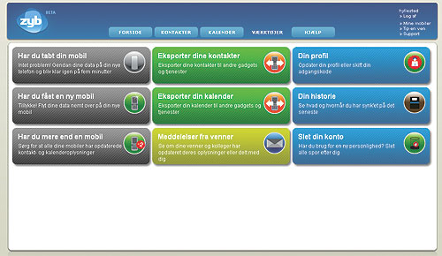 Når du logger ind på Zybs webside, kan du styre dine kontakter direkte derfra. Hvis du eksempelvis vil opdatere en kontakts informationer, kan du få Zyb til at sende en mail til vedkommende og bede ham om selv at opdatere informationerne, der så kommer automatisk over på din mobil, næste gang du synkroniserer.