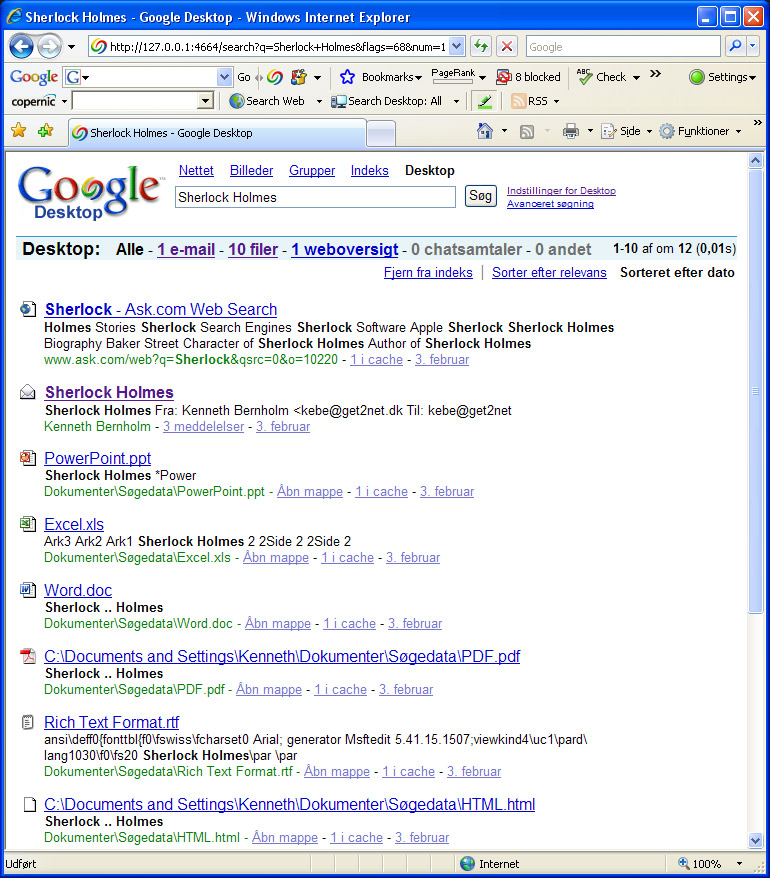 Har du først én gang brugt 30 minutter på at lede efter det dokument eller den mail, som man helt 100 procent ved findes et sted på pc'en, så er du moden til at installere en lokal søgemaskine.